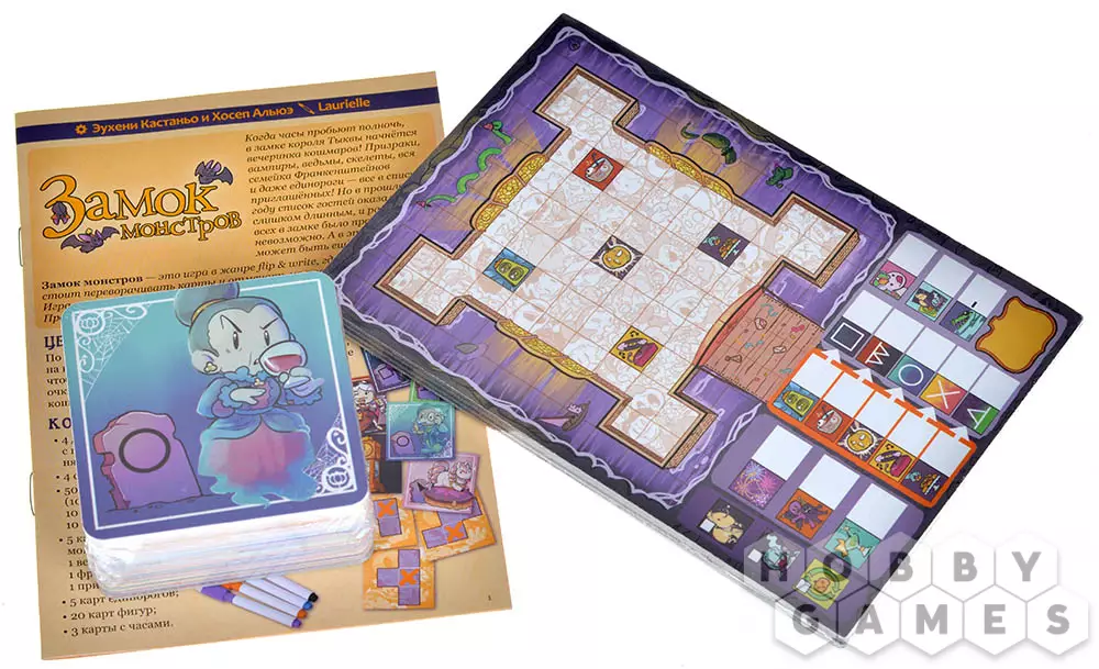 “Замок монстров” – настолка в уникальном жанре Flip & Write. Переворачивайте карты, делайте пометки на планшете и готовьтесь к безудержному веселью и приключениям в компании милых (и не очень) монстриков!