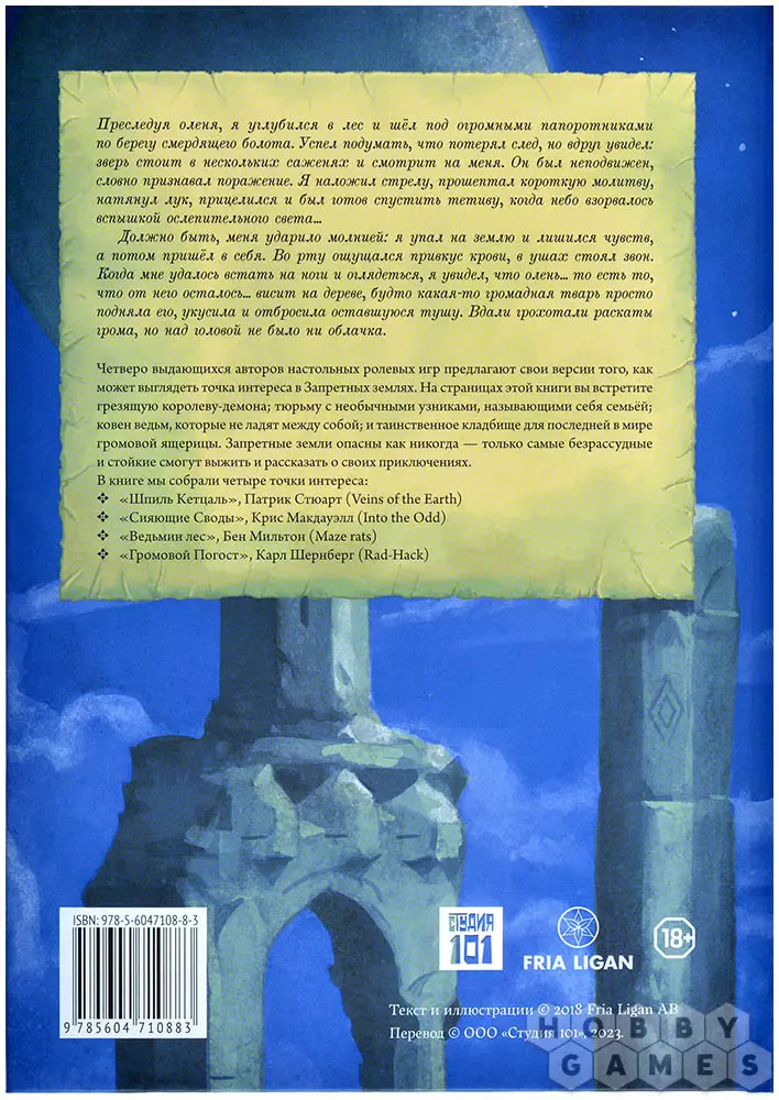 Четыре знаменитых автора настольных ролевых игр представляют свои варианты интересных мест в "Запретных землях". В этой книге вы найдёте: мечтающую о власти демоническую королеву; тюрьму с уникальными заключёнными, считающими себя родственниками; ковен ведьм, в котором случился разлад; и загадочное кладбище для последнего в мире громового ящера. Эти места полны опасностей – лишь отчаянные и выносливые исследователи способны пережить путешествие, полное опасностей, и поделиться своими рассказами о полученном опыте. В этой книге представлены четыре точки интереса: