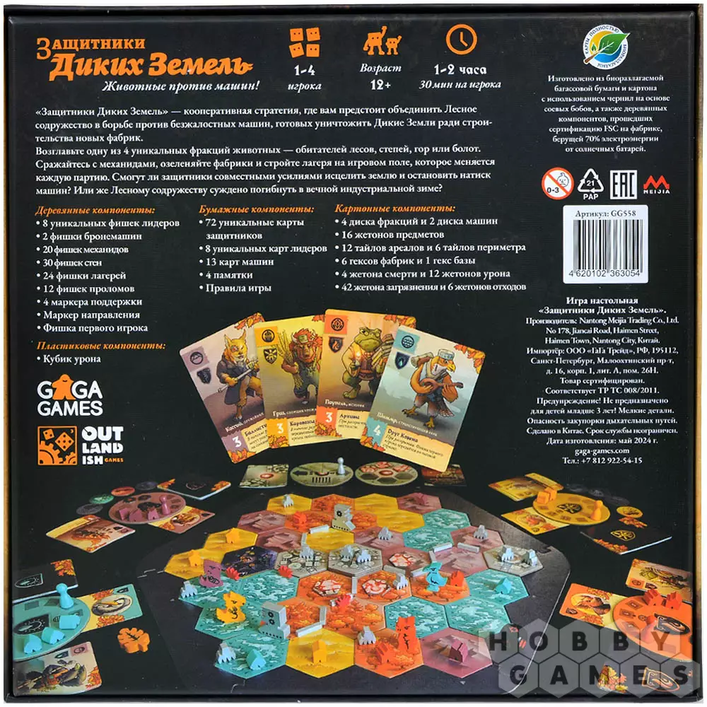 Эта кооперативная стратегия требует чёткой координации: разрушайте стены, зачищайте загрязнённые территории и уничтожайте механидов, пока не стало слишком поздно. У каждой фракции свой лидер – от отважной жабы с ракетницей до орла-музыканта, а его способности помогут выстоять в борьбе. Каждый ход вы выбираете карту защитника, определяя свои действия: передвижение, атаку, очищение природы или строительство лагеря. Но за вами следит разум машин! Фабрики распространяют загрязнения, дроны выслеживают лидеров, а механиды строят стены, не оставляя места для жизни.