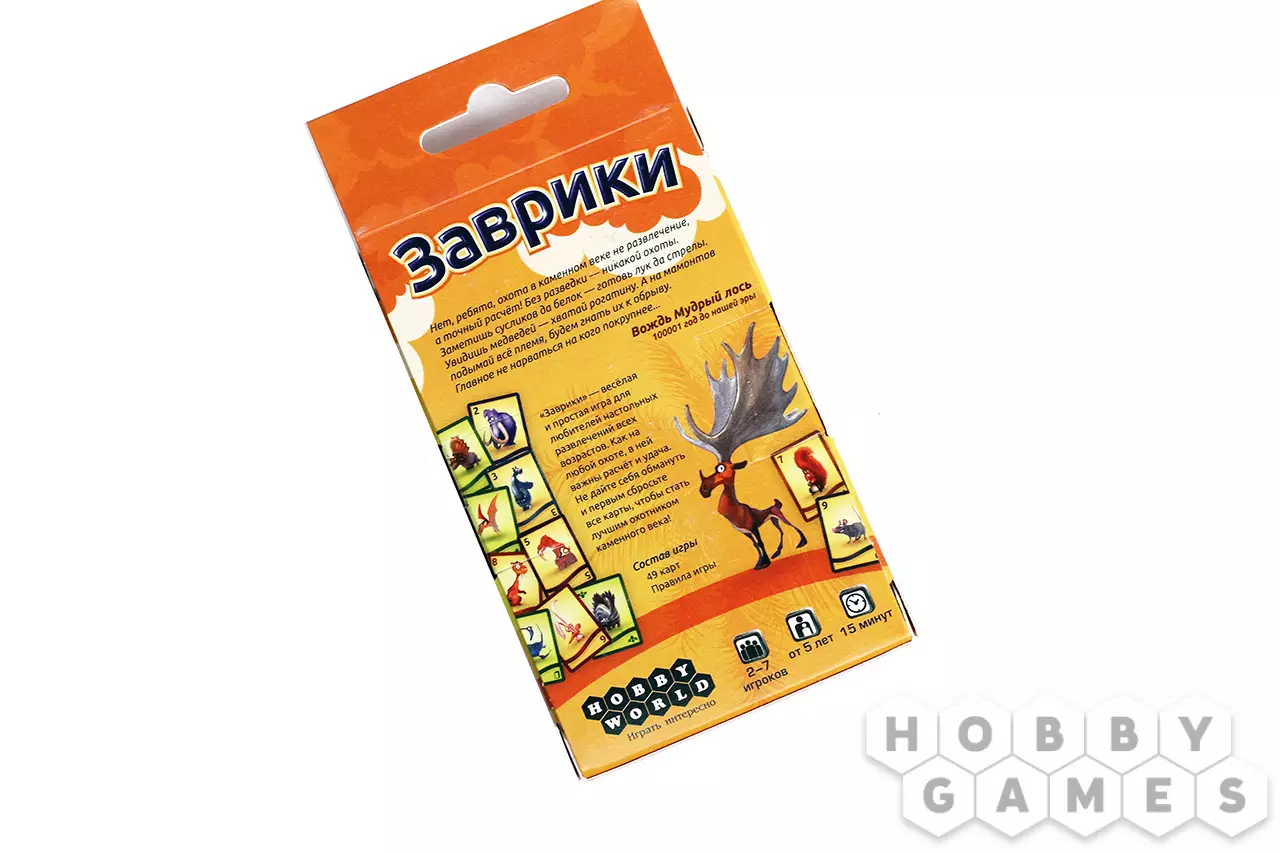 Безнин25.04.2018 19:26Игра "Заврики" на основе "народной" механики "верю-не верю". Ну да, еще добавлены карточки тираннозавров. Эдакие "козыри", которые невозможно отгадать. Дочери было 6 лет , когда попробовали играть по правилам. И получили разочарование, т.к. по правилам нельзя говорить "Верю". Можно только "Не верю" или класть карты и передавать ход. Ребенок не мог понять почему нельзя, если точно знает что там. )) В общем, добавили хоумрул и играли. Картинки животных прикольные, даже младшему 4 летнему понравилось. С ним играли этими же картами по правилам "пьяницы". В общем, недорогая игра (колода всего), места мало занимает и пару игр всегда под настроение можно сыграть.