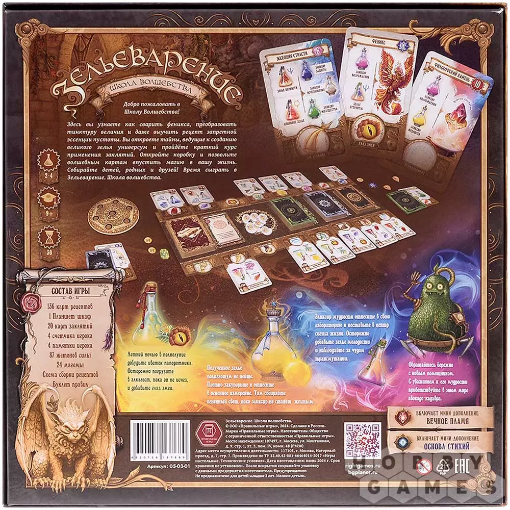 "Зельеварение. Школа волшебства" – это увлекательная настольная игра, которая погружает вас в атмосферу магических экспериментов и тайн. Теперь у вас есть возможность пойти по стопам великих волшебников и узнать, как смешивать корень златоцветника с настойкой полыни, создавать мощные эликсиры и призывать магических существ. Возможно, именно вы откроете секрет Философского камня! Забудьте о случайных экспериментах с шампунями в ванной – пора творить настоящую магию!