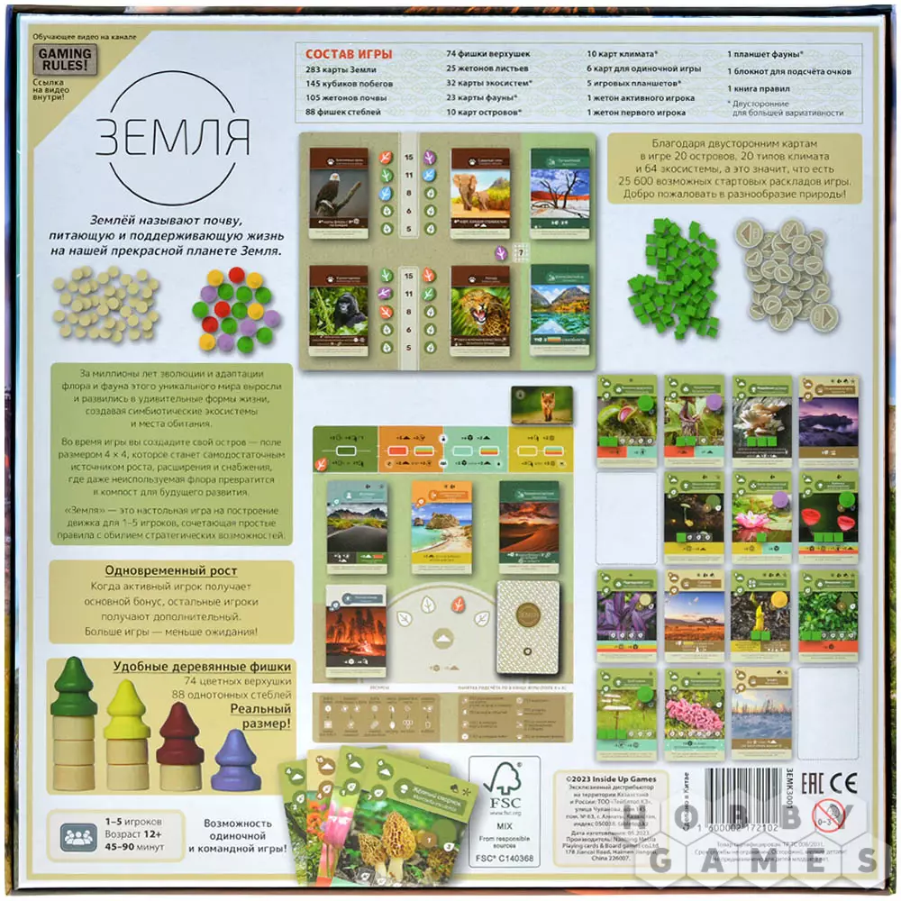 Земля – наш дом, который дарит нам не только жизнь, но и бесконечное вдохновение. В её бескрайних просторах и глубоких океанах рождается и развивается жизнь. Каждый уголок этой удивительной планеты уникален. У вас есть шанс создать свой собственный процветающий уголок, где природа будет расцветать благодаря вашим усилиям и решениям. Настольная игра "Земля" приглашает вас воплотить эту мечту в реальность, стать творцом и исследователем собственного острова.
