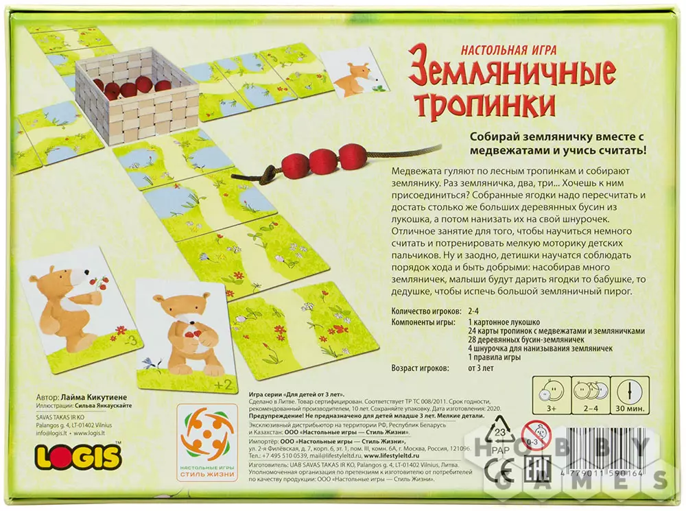 Крупные и наглядные компоненты идеально подходят для детей дошкольного возраста: каждому игроку полагается толстый шнурок, на который он будет нанизывать бусинки, символизирующие землянику. Необходимость считать ягоды и сопоставлять их количество с указанным на карте развивает навыки устного счёта и логического мышления. А правила игры располагают к спокойному времяпрепровождению без соперничества, ведь маленькие медвежата, как и игроки, хорошие и добрые друзья!