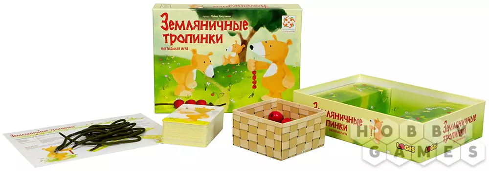 В настольной игре "Земляничные тропинки" вы сможете помочь медвежатам собрать ягоды для земляничного пирога. Открывая карточки с изображением тропинки, юные игроки будут набирать из лукошка ягоды, которые предстоит подарить бабушке или дедушке медвежьего семейства.