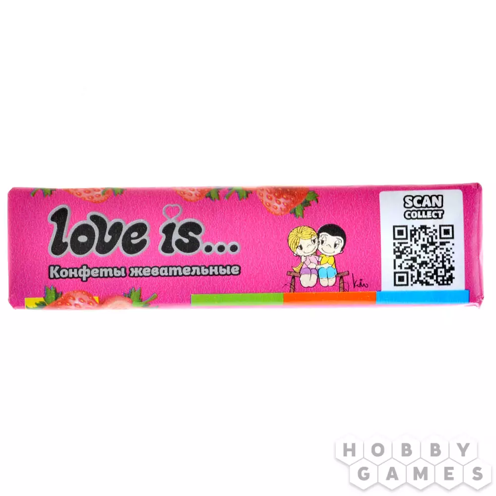Перед вами упаковка жевательных конфет Love is.... Каждая конфета упакована в индивидуальный вкладыш с картинкой на извечную тему любовных отношений.