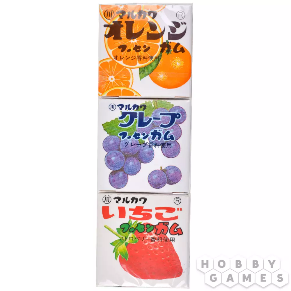 Легендарный бренд Marukawa завоевал сердца многих японцев жвачкой с необычными и насыщенными вкусами. Внутри данной упаковки вы найдёте жевательную резинку 3 разных вкусов! А сама упаковка выполнена в характерном для компании стиле: каждый вкус жевательной резинки расфасован по аккуратным прямоугольным коробочкам небольшого размера.