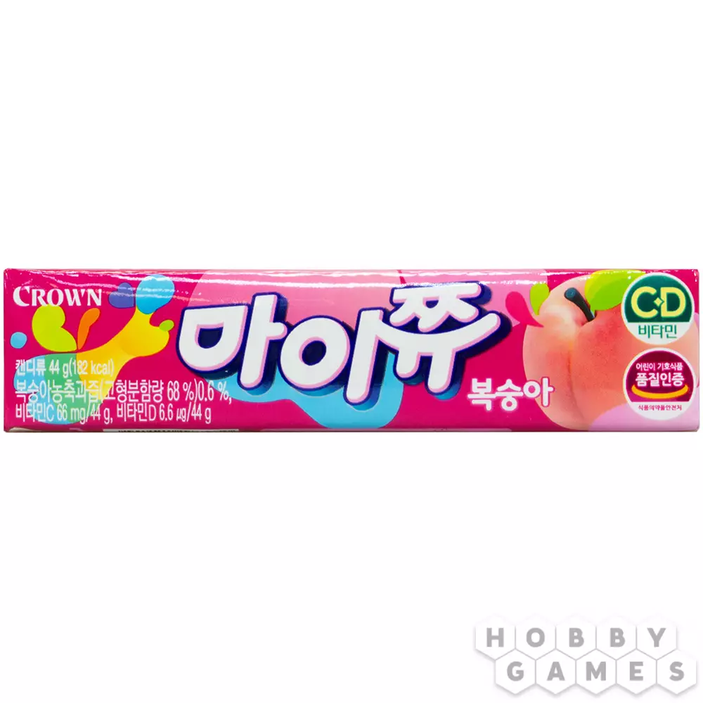 Вот уже более полувека корейская компания Crown Confectionery радует людей по всему миру своей кондитерской продукцией. Сегодня и у вас есть возможность попробовать вкусы жевательных конфет Crown. Сразу предупреждаем – одной упаковки мягких конфет может и не хватить. Яркий персиковый вкус пленяет мгновенно, а приятная мармеладная текстура доставит вам настоящее гастрономическое удовольствие.