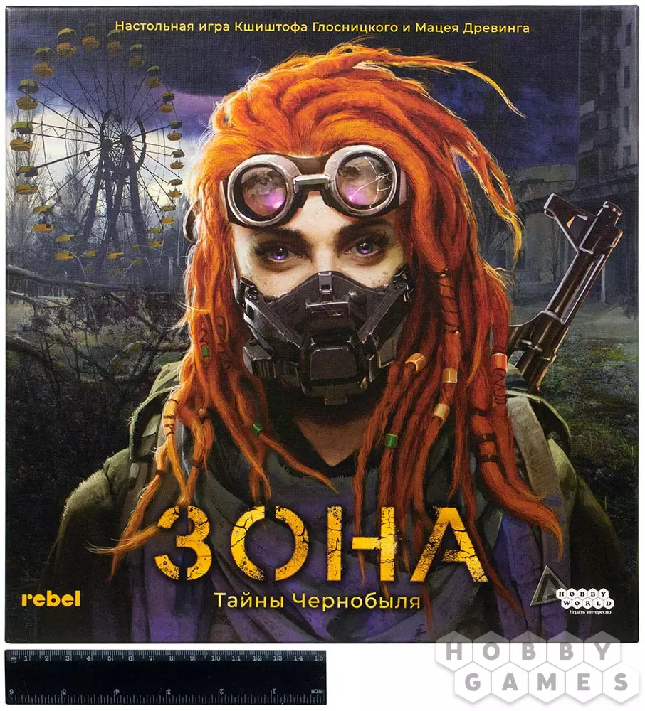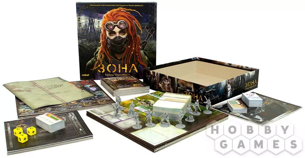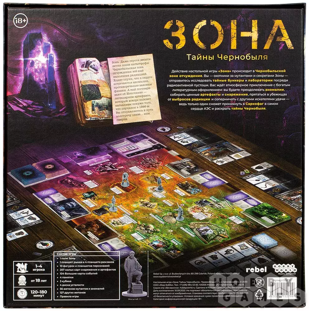 "Зона: Тайны Чернобыля" – настольная игра в сеттинге постапокалипсиса, рассчитанная на 1–4 игроков. Вы играете за отважного искателя приключений, который очутился в Чернобыле с одной-единственной целью – добраться до саркофага АЭС быстрее остальных. На пути к победе на каждом шагу вас будут ждать опасности, а проблемы выживания станут для вас обыденностью. Дорога до исполнителя желаний будет проходить через опасные места и тайные лаборатории, в которых хранится информация, необходимая для проникновения в саркофаг. Исследуйте заброшенные локации, зарабатывайте деньги на специальное снаряжение и ищите полезные артефакты, чтобы увеличить свои шансы на победу. Но хватит ли вам сил справиться с последним испытанием или суровый мир поглотит вас навсегда?