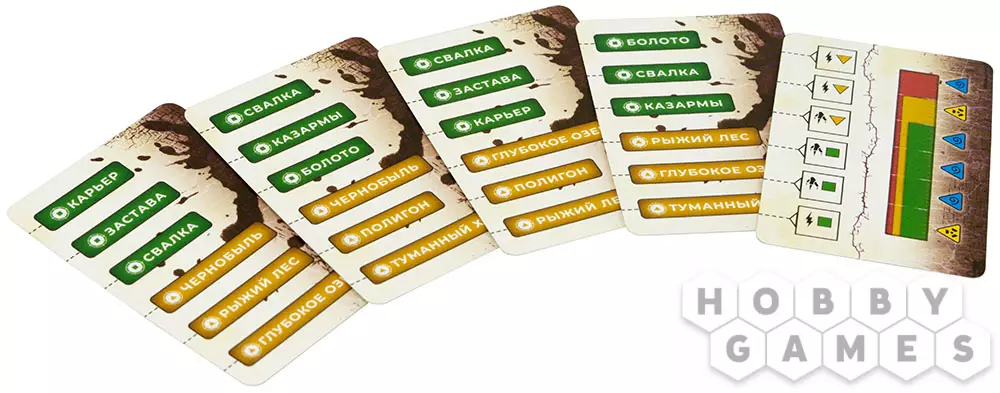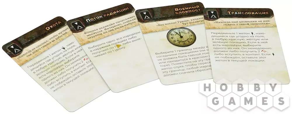 Фаза слухов. В конце раунда вытягивается одна карточка слухов. Они описывают происшествия, которые влияют на всю обстановку в Зоне, подталкивая игроков скорее приблизиться к финишу и победе.