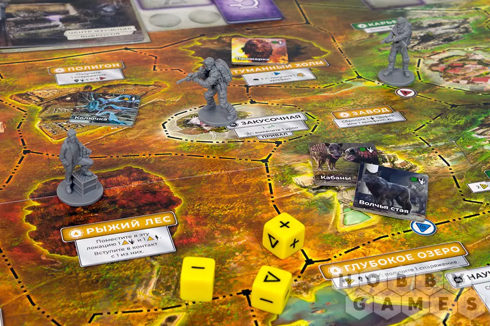 Вся игра происходит на игровом поле и локациях, по которым будут ходить игроки, и где будут выкладываться жетоны мутантов и аномалий.