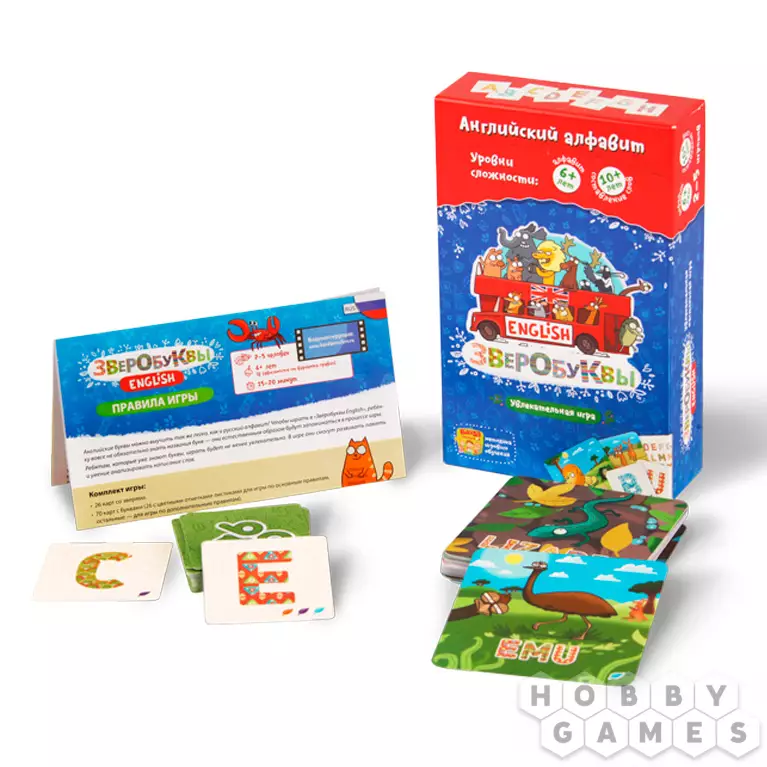 Хотите познакомиться с увлекательным миром английского языка или изучить его получше с помощью забавных зверят? Нет ничего проще, если к вам в руки попала коробка с игрой "Зверобуквы English". Если ваши дети уже приступили к изучению иностранного языка на школьных занятиях, то эта настольная игра станет прекрасным дополнением, позволяющим попрактиковаться и расширить свои знания дома. Благодаря своему формату, тренирующему знание букв и правил произношения, эта настолка может заинтересовать даже взрослых.