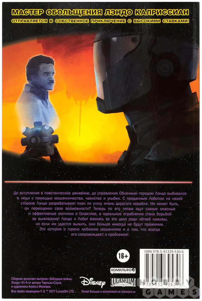 Из этой книги вы узнаете, кем был Лэндо до того, как попал в движение повстанцев и начал управлять Облачным городом. Как несложно догадаться, он был тем ещё пройдохой! И с помощью своей мошеннической улыбки и обмана тщетно пробовал добиться хоть чего-то. Внутри книги вы найдёте историю ограбления, которая превратилась в отчаянную борьбу за выживание: ведь после того, как Лэндо и Лобот угнали ценный космолёт, по их пятам идут лучшие охотники за головами во вселенной!