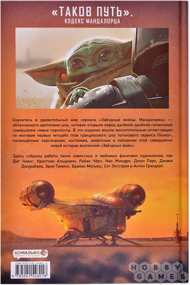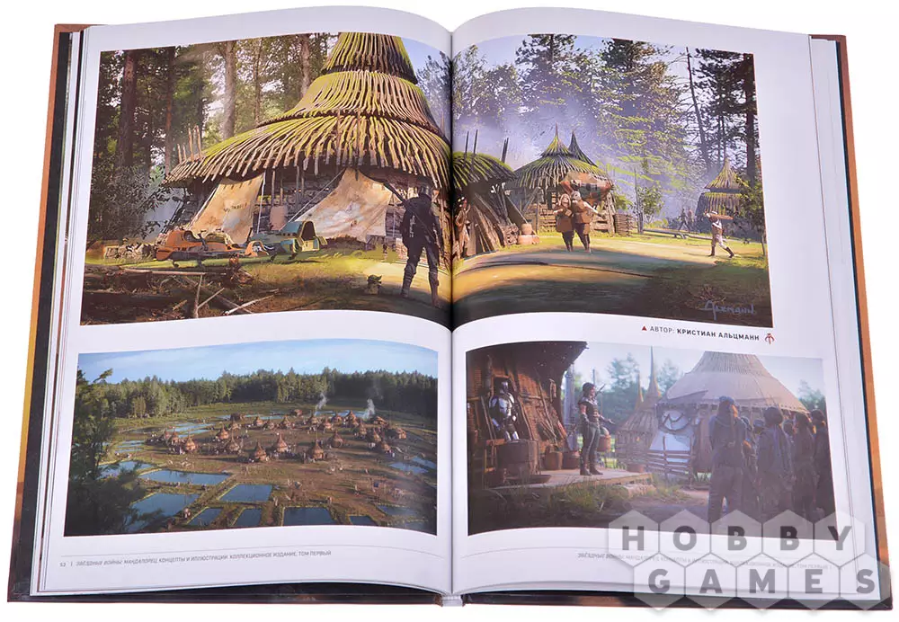 Под обложкой вы найдёте работы множества художников, благодаря которым дизайны и образы "Мандалорца" обрели форму: здесь и концепт-арты, и дизайны персонажей, и масштабные локации, и всевозможные иллюстрации.
