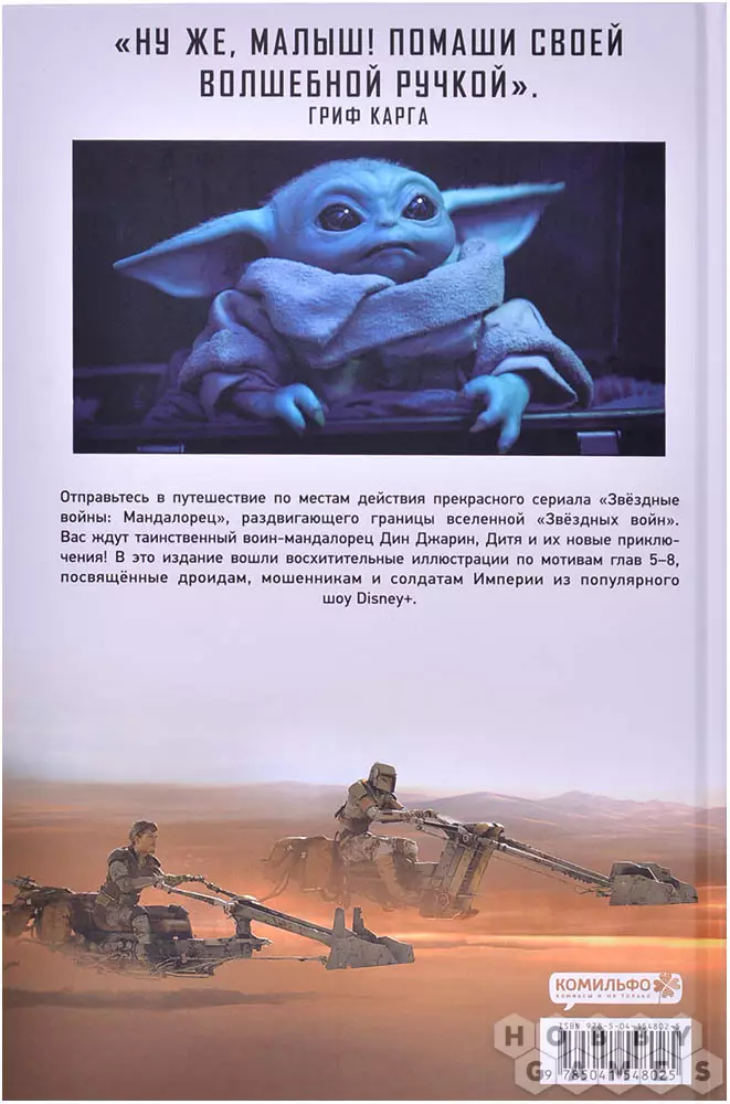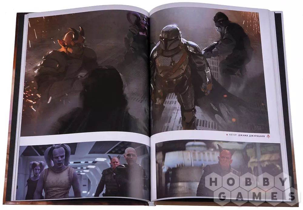 Под обложкой вы найдёте работы множества художников, благодаря которым дизайны и образы "Мандалорца" обрели форму: здесь и концепт-арты, и дизайны персонажей, и масштабные локации, и всевозможные иллюстрации.