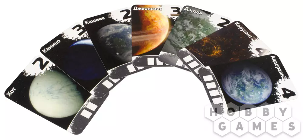 Захватить планету – захватить можно только планету с максимальным количеством кораблей в обороне. Помимо этого, для захвата планеты корабли в вашем флоте и в обороне захватываемой планеты должны совпадать полностью или частично. Например, для захвата четырёхочковой планеты, вам необходимо иметь три аналогичных корабля в своём флоте. После захвата планеты вы сможете добрать карты – до пяти карт в вашей руке и флоте.