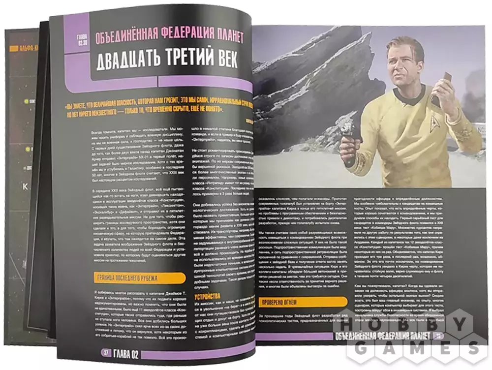 Это комплексное руководство предлагает полный набор правил для НРИ, работающей на основе системы 2d20. Оно включает в себя подробные данные об Объединенной Федерации Планет и о мире иных рас Альфа-, Бета- и Гамма-квадрантов. В книге представлена ценная информация из дневников капитанов и разведывательные данные Звездного флота о разнообразных локациях, космических кораблях, вооружении и технологиях. Также описываются инопланетные расы, доступные для включения в игру, и потенциальные противники, среди которых Клингоны, Ромуланцы, Кардассианцы, Борги и Доминион, а также различные опасности, скрывающиеся в разных уголках космоса, например, аномалии и агрессивные формы жизни.