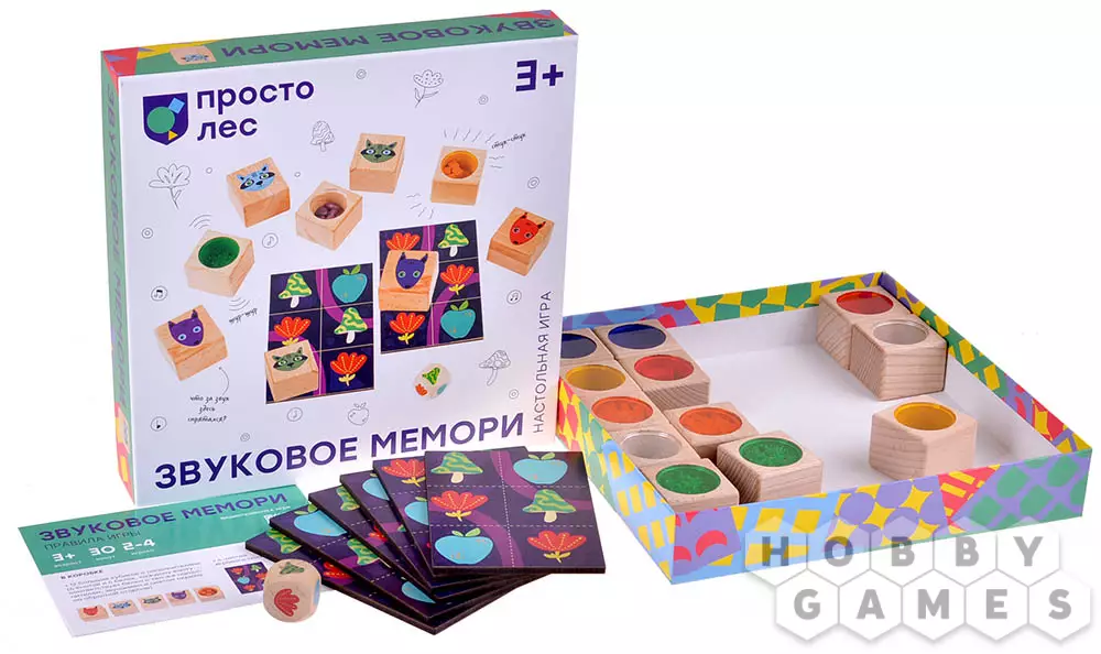 В коробке с этой игрой вы найдёте курс развития звукового восприятия, которое очень важно в процессе любого обучения маленьких детей. Он состоит из десяти мини-игр для игры ребёнка со взрослым, каждая игра отличается от другой уровнем сложности. Кубики выполнены из дерева и приятны на ощупь, а яркие иллюстрации животных на них привлекут к себе внимание юных игроков.